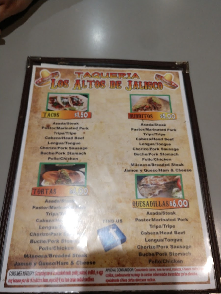 Los Altos Jalisco Menu