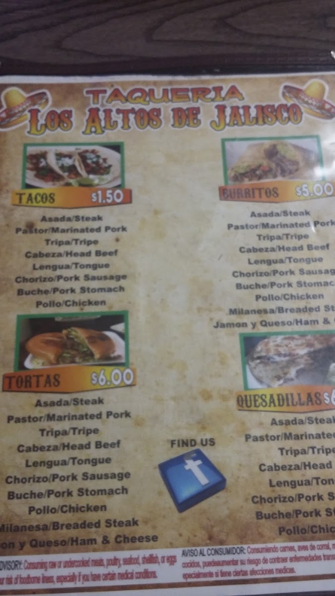 The menu at Los Altos Jalisco offers a straightforward, comforting selection of classic Mexican dishes that feel right at home in a casual, welcoming setting. You’ll find a variety of tacos, burritos, and tortas centered around well-prepared carne asada, al pastor, and pollo, along with satisfying sides and sharing plates designed for relaxed, everyday dining.